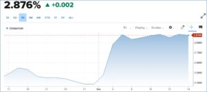 There’s also foreign competition for investors that buy bonds. Traditionally, the US has been the big spender in the world. We are not only the most charitable country, but we supplement the security of nations around the globe. The Trump administration wants to significantly reduce the amount we contribute worldwide to lower our deficit. That will require others to pick up the slack. The European Union announced on March 4th they have agreed in principal to fund $800-Billion Euros in new defense spending to make up for the US’s actions. That large amount of spending – not even approved yet, sent rates for the German equivalent to our US 10-Year Note (The German 10-Year Bund) to jump 22.5% overnight.