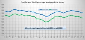 *** Please note that Freddie Mac publishes their weekly rate report on Wednesday mornings from data received Mondays and Tuesdays. The graph above is intended to shown rate trends, and not “today’s current rate”. ***