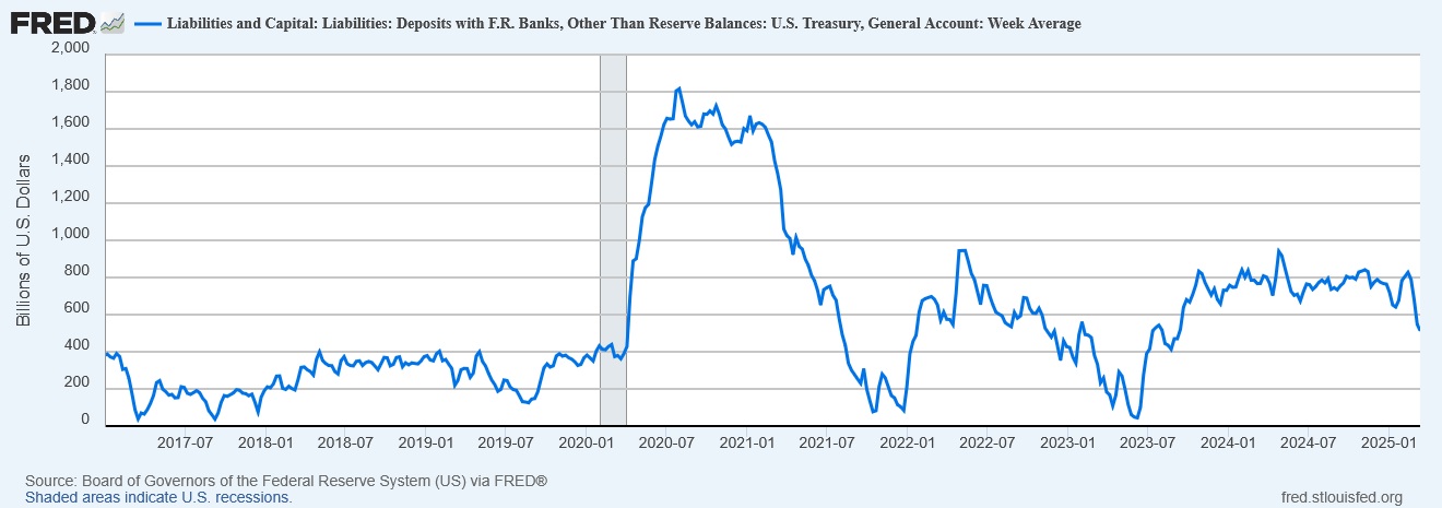 The Treasury General Account (TGA) is the U.S. government's primary operating account, held at the Federal Reserve, where tax payments, proceeds from Treasury securities, and government disbursements are managed. It's used for all major financial transactions of the U.S. government, including receiving tax payments and other revenues and tax receipts, plus proceeds from the sale of Treasury securities. The TGA is also used to pay Social Security benefits, salaries, interest on the national debt, and other government expenses.
