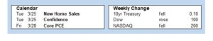 Investors will continue to watch for additional information about tariff policies.  For economic reports, New Home Sales and Consumer Confidence will come out on Tuesday.  Personal Income and the PCE price index, the inflation indicator favored by the Fed, will be released on Friday.