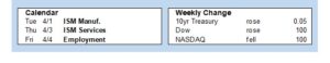 Investors will continue to look for additional information about tariff policies. For economic reports, the ISM national manufacturing sector index will be released on Tuesday and the services sector index on Thursday. The Trade Deficit also will come out on Thursday. The key Employment report will be released on Friday, and these figures on the number of jobs, the unemployment rate, and wage inflation are always closely watched.
