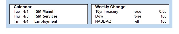 Investors will continue to look for additional information about tariff policies. For economic reports, the ISM national manufacturing sector index will be released on Tuesday and the services sector index on Thursday. The Trade Deficit also will come out on Thursday. The key Employment report will be released on Friday, and these figures on the number of jobs, the unemployment rate, and wage inflation are always closely watched.